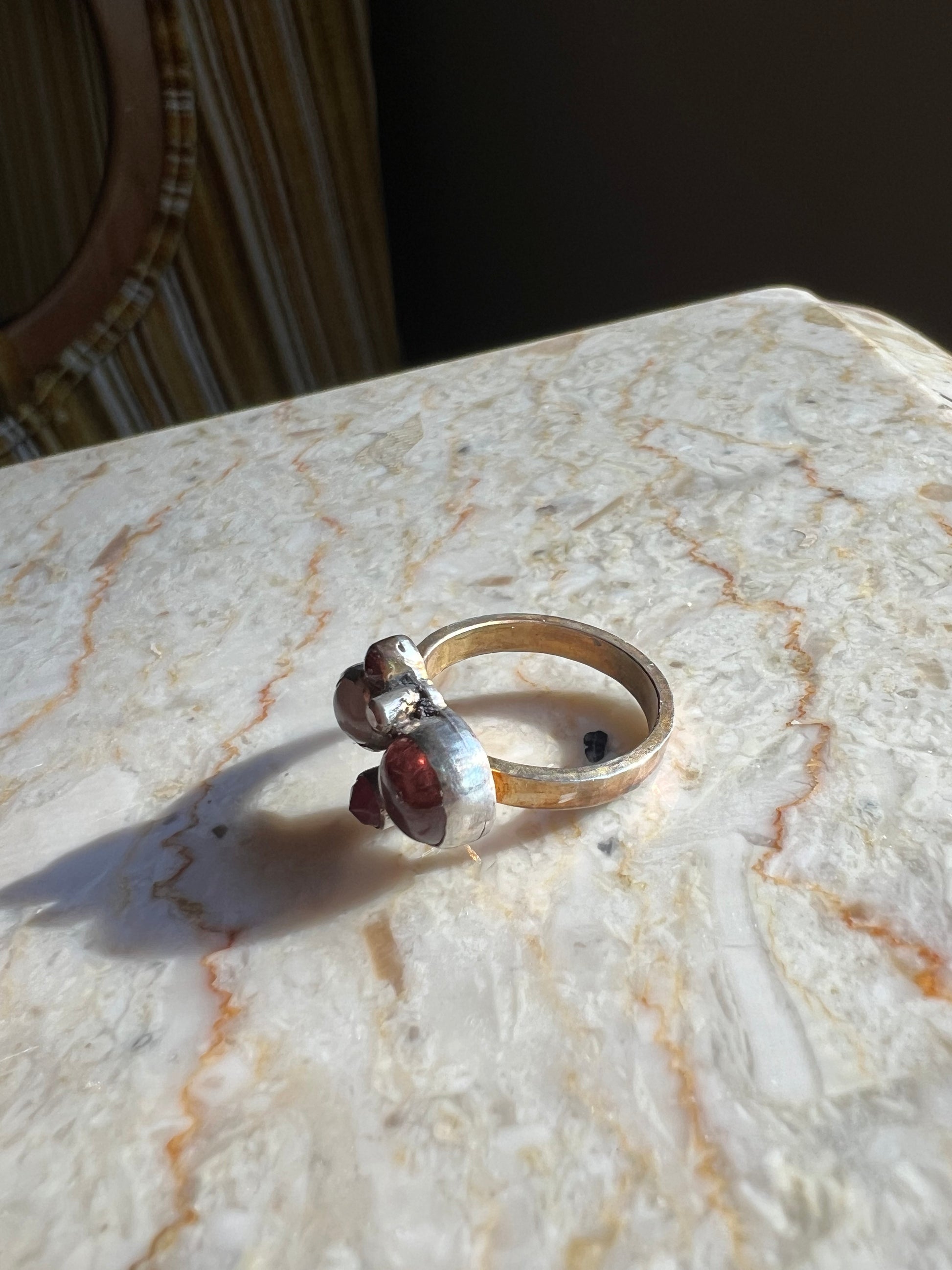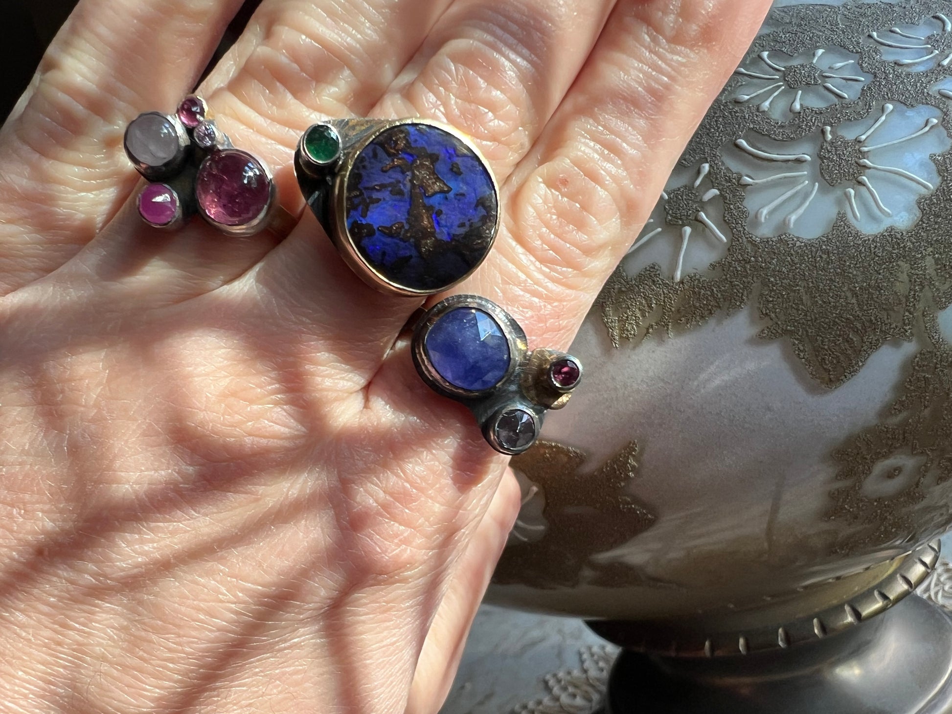 handmade tourmaline rose quartz and sapphire pink cluster ring one of a kind