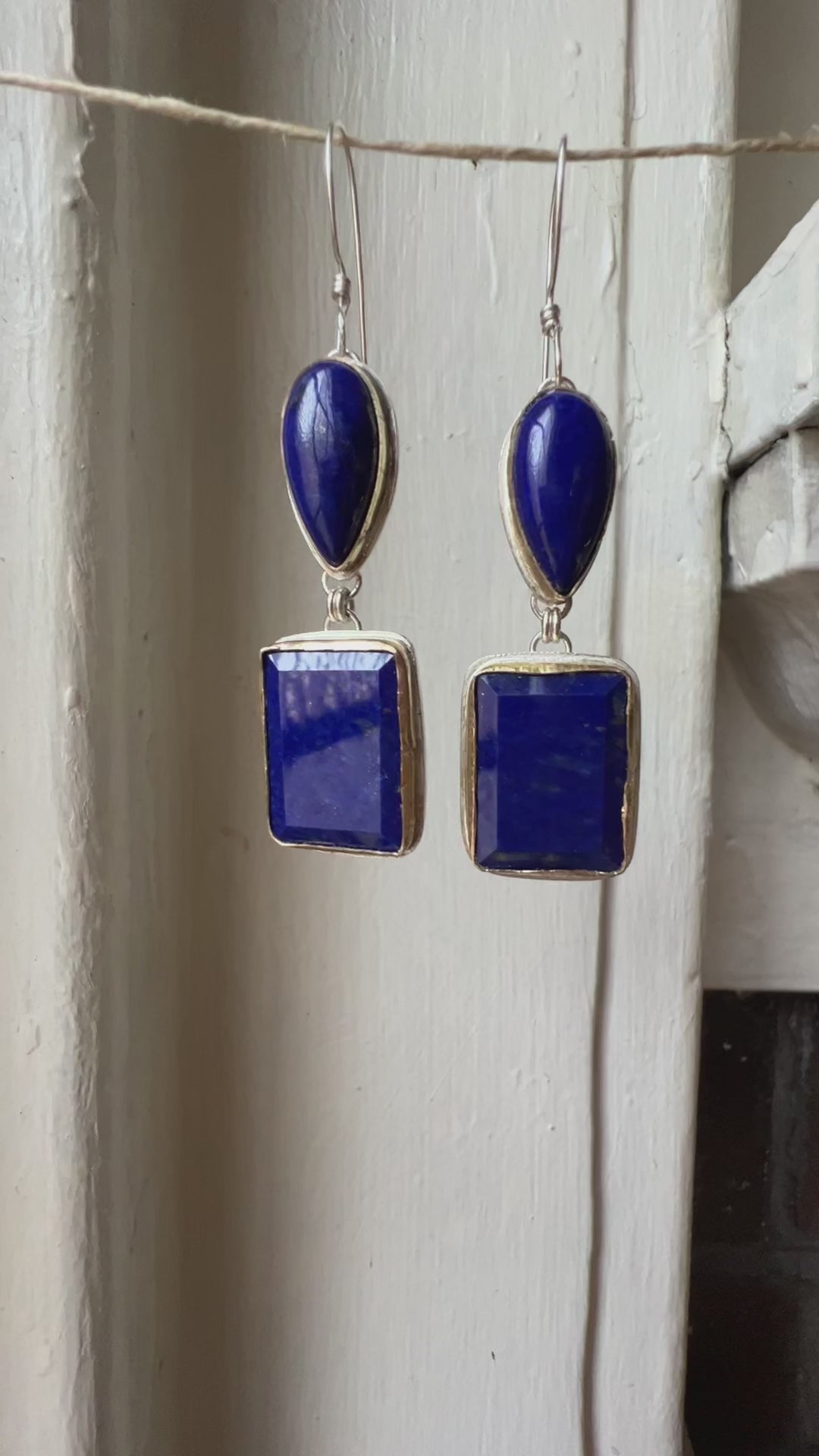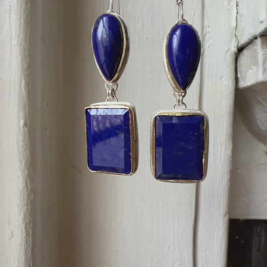 portrait cut lapis lazuli earrings in sterling silver with 14k gold
